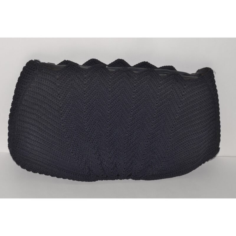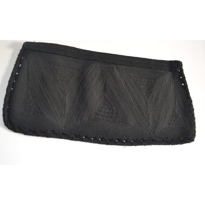 This very vintage black crocheted fan clutch purse has fabric lining and one zip pocket. 16W x 9T Very good