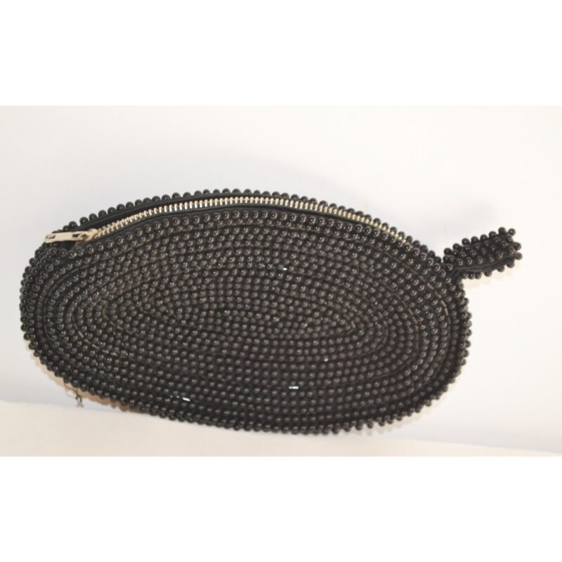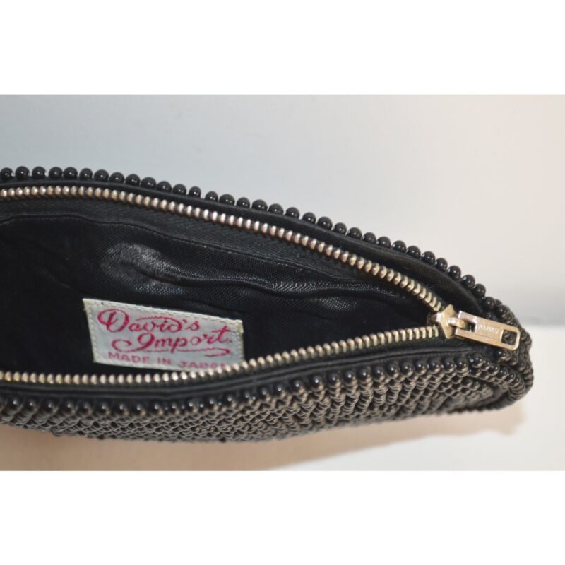 This vintage black oval swirl beaded evening coin purse is from David’s Import. Interior is fabric lined.   6.5W x