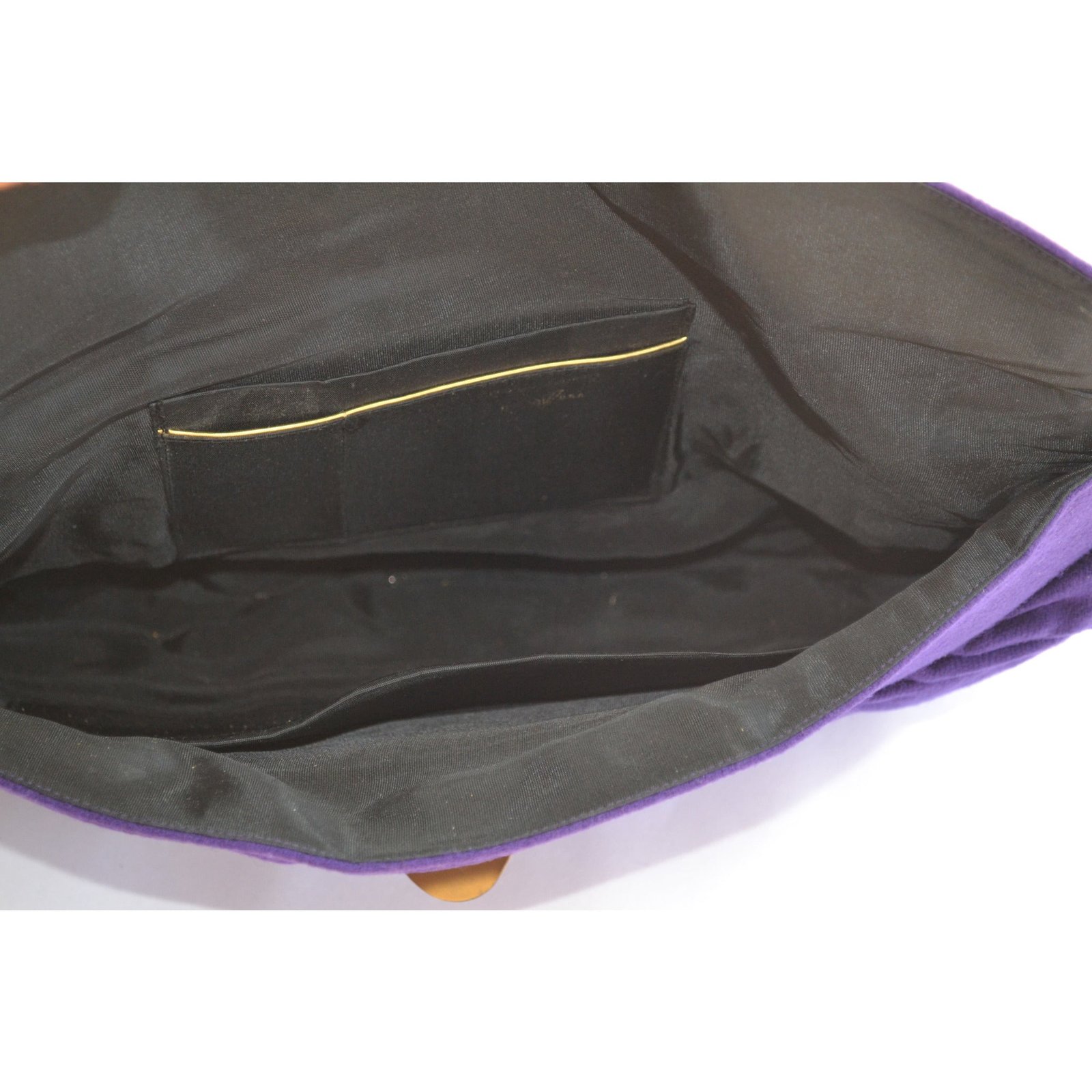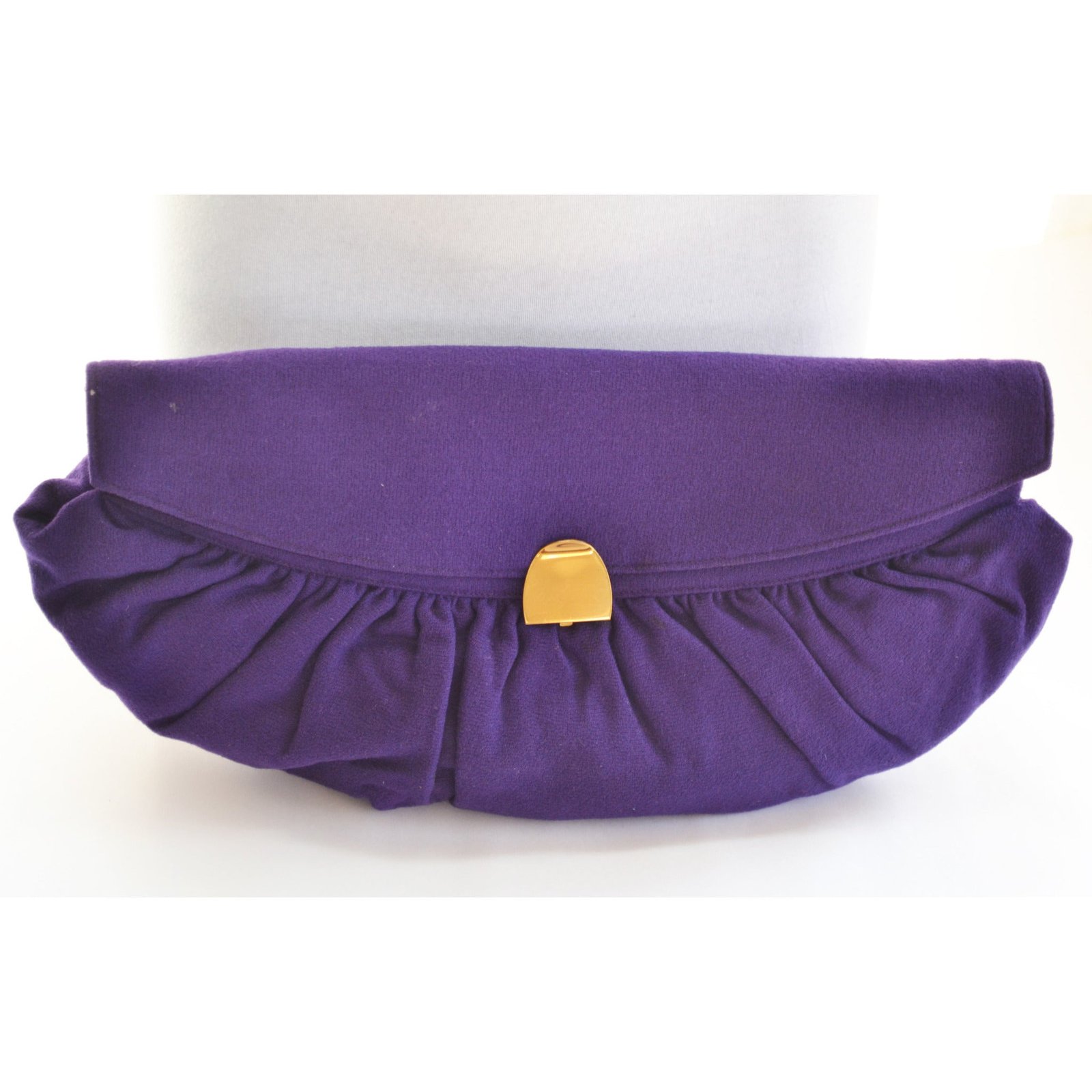 This chic, elongated vintage purple pouch clutch purse is made of wool. Interior is fabric lined with one pocket.